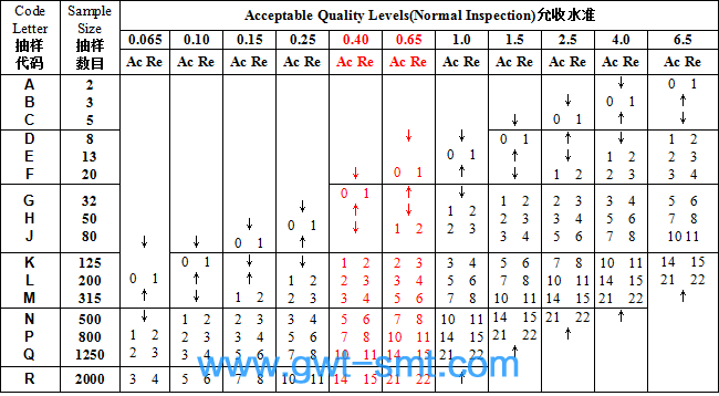 由上敘的條件及查對的數(shù)據(jù),即為你此次對此批貨在做抽樣檢驗時所要遵循的標(biāo)準(zhǔn),屆時你即可依實際的不良品數(shù)和標(biāo)準(zhǔn)之相符或差異數(shù)做為對此批貨允收或拒收之判斷判定。