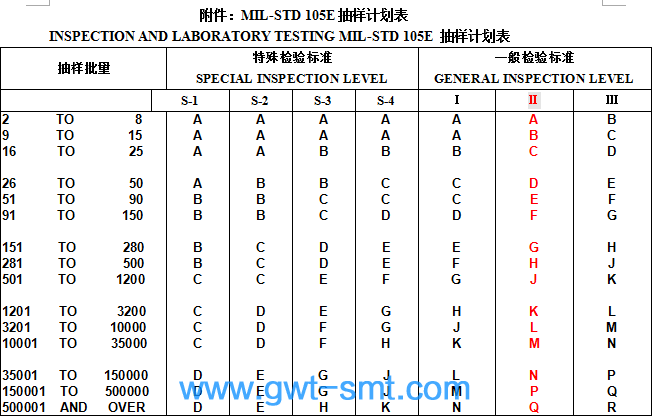 E. 采用II級檢驗水準(zhǔn)(INSPECTION LEVEL II)。